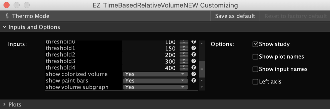 - The Relative Volume, Trades, Shares-Per-Trade, and Shares-Per-Range indicators have all been combined into a single indicator that lets you switch between modes.